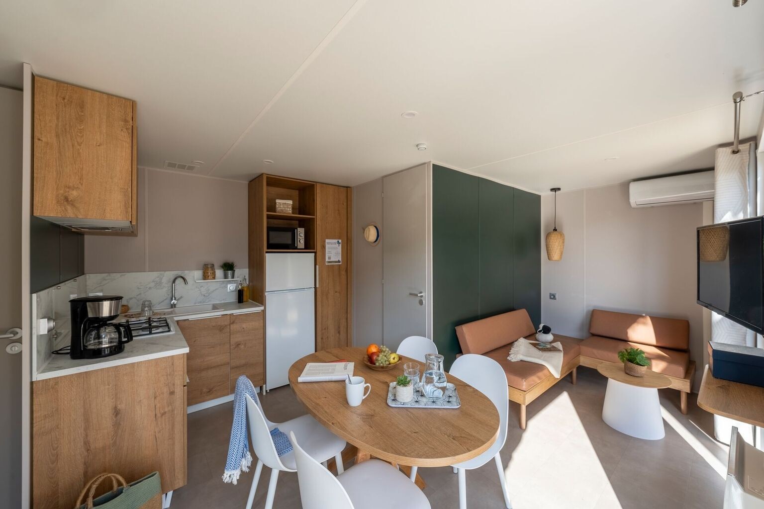 Kemping znajduje się bezpośrednio przy plaży Pont Mahé. Na miejscu znajduje się również rozrywkowy park wodny ze zjeżdżalniami i krytym basenem, a także strefa spa, w której można zasłużyć na zasłużone odprężenie podczas wakacji.