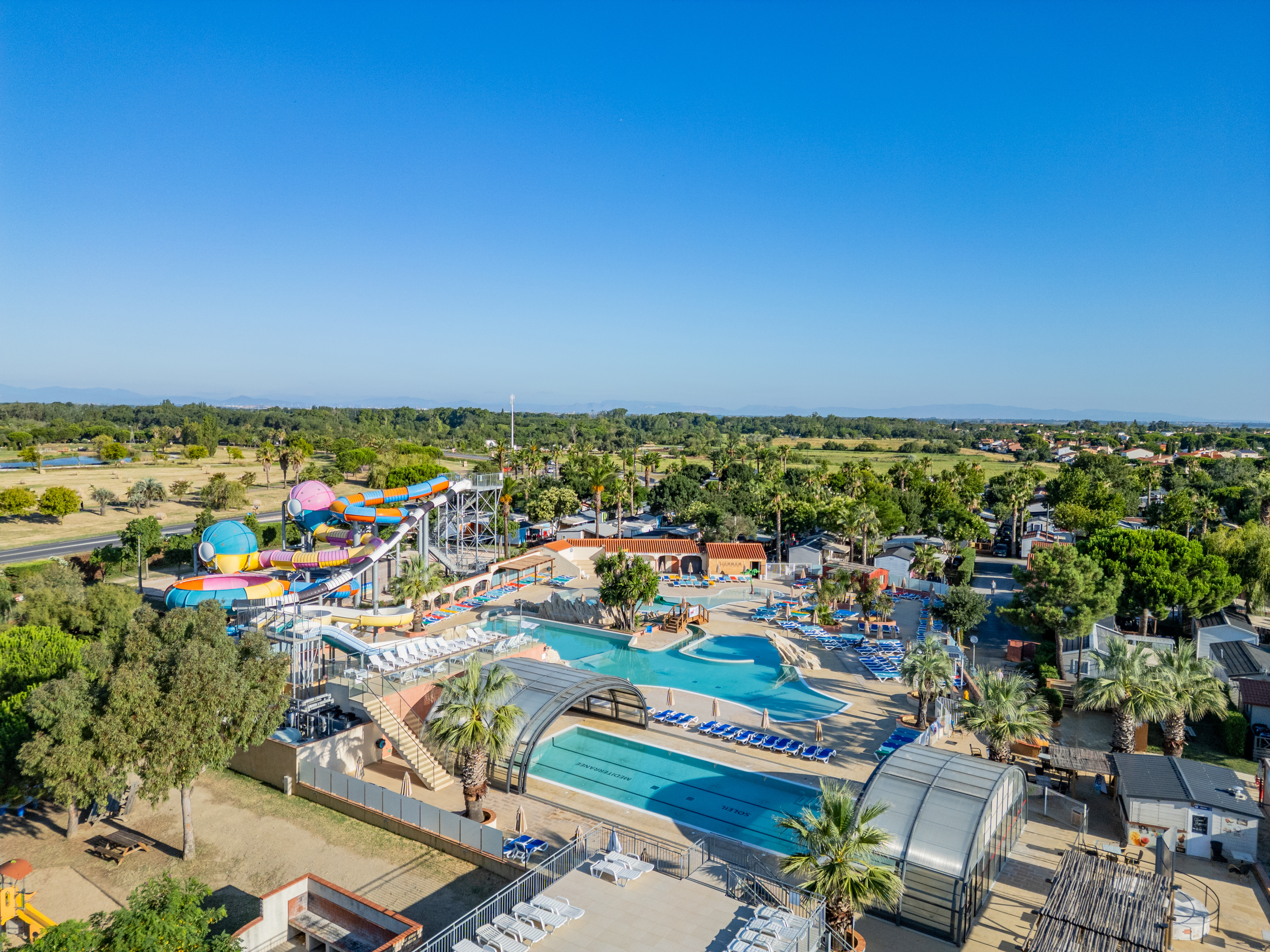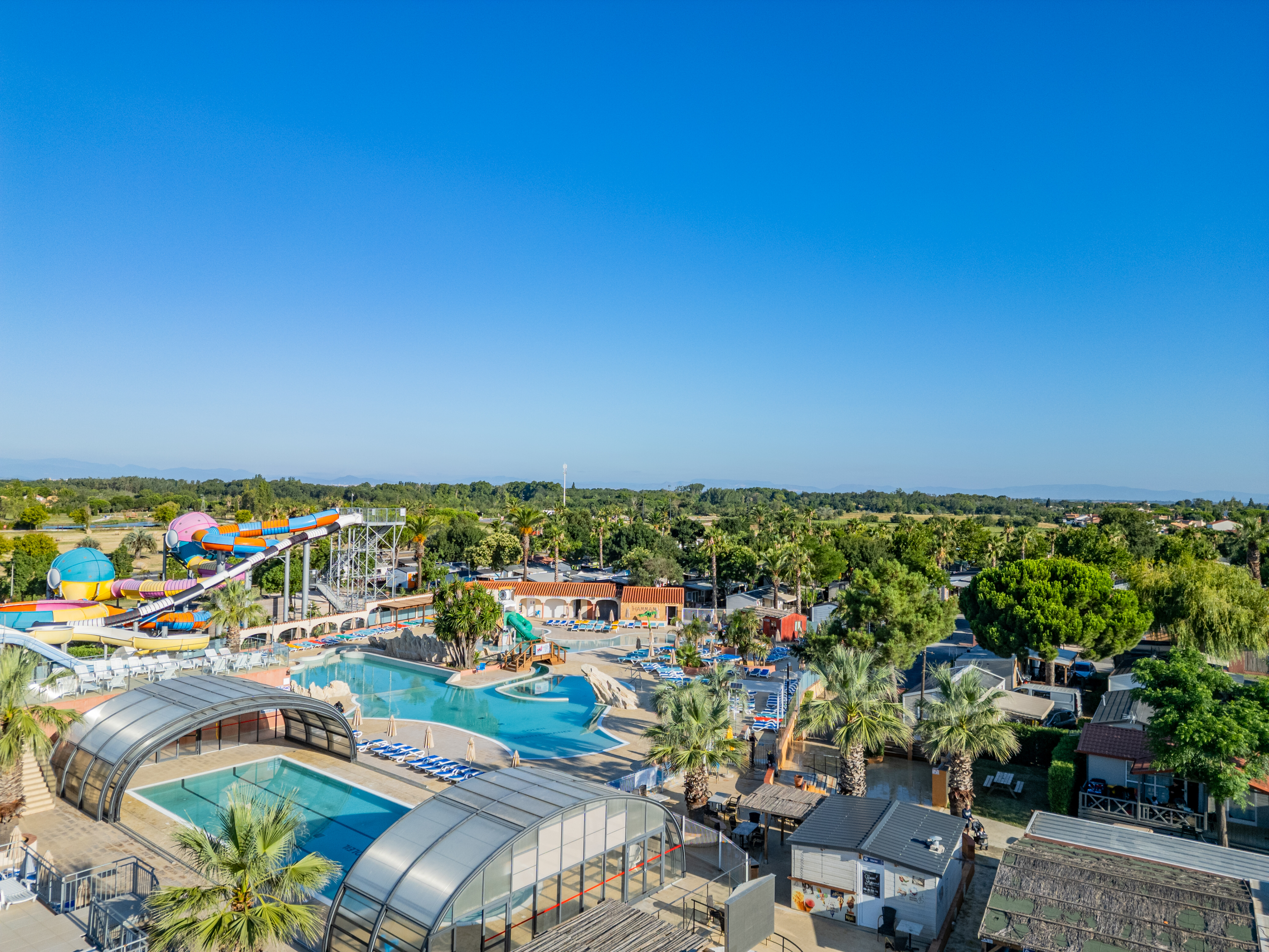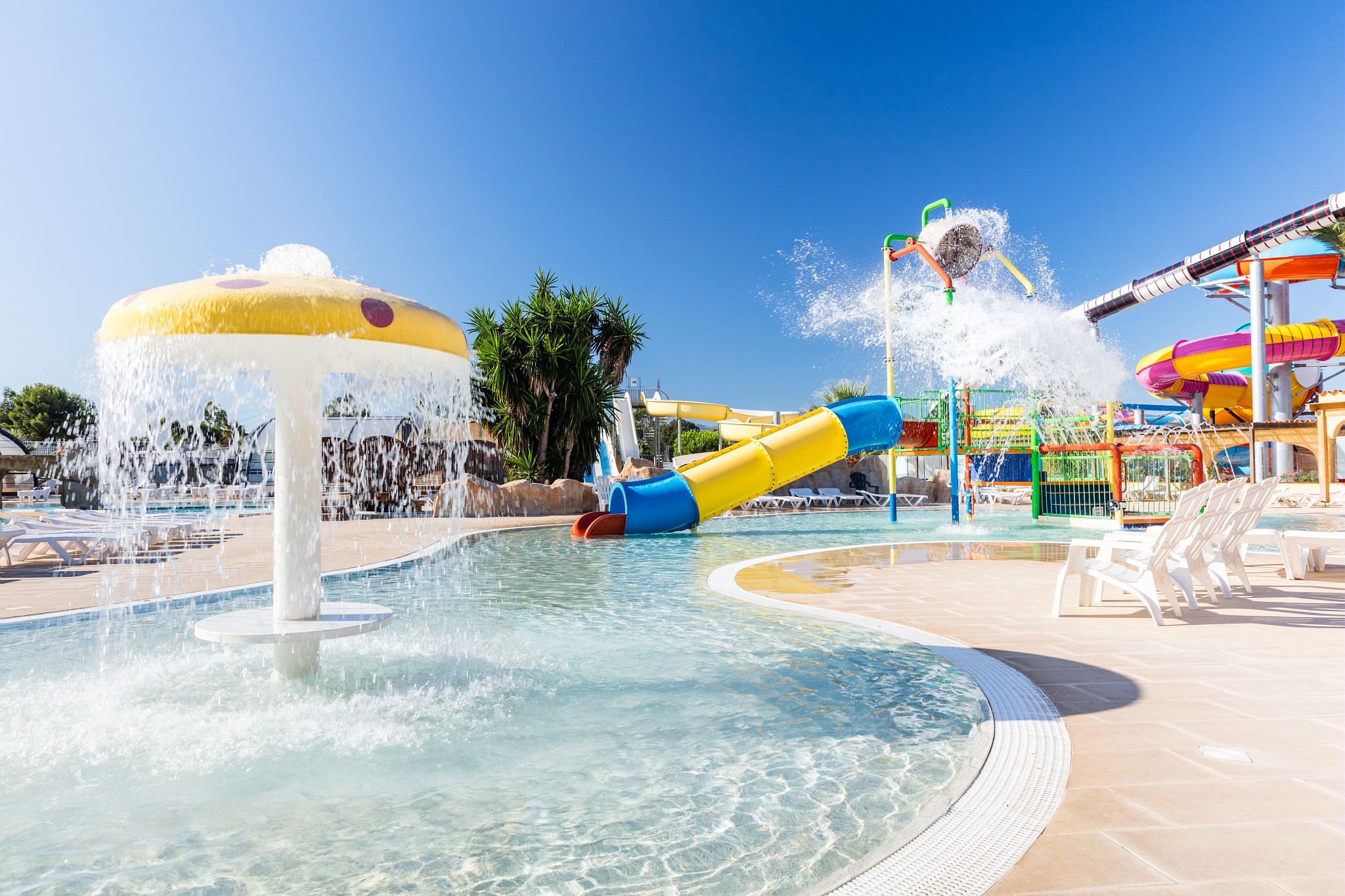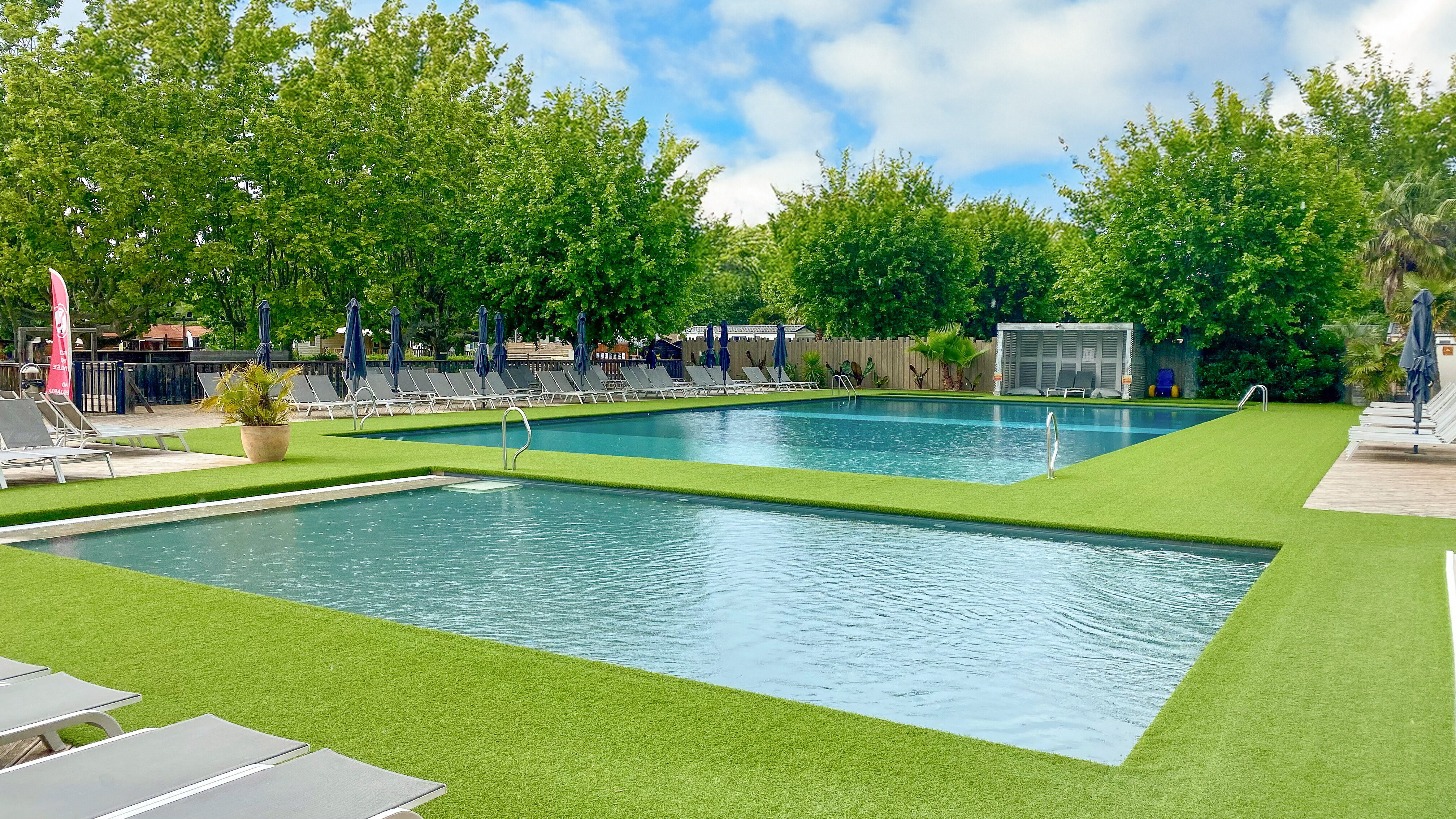 - Dwa baseny ze zjeżdżalniami